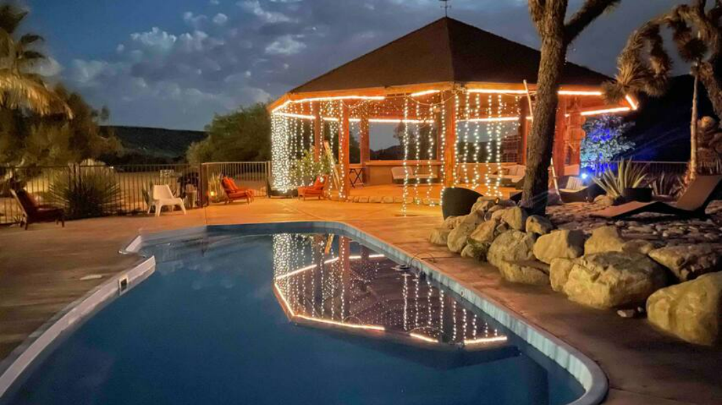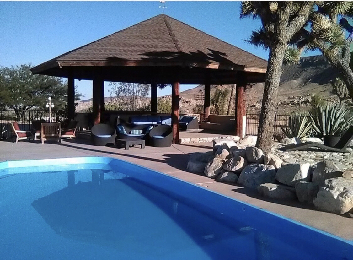 Since 2012, a successful property for Bed & Breakfast/ AirBandB with 6 bedrooms (+ 4 with plans & permits to come). + already more than 6,000 guests and VIP’s. 32 acres in a secluded area, with a helicopter pad, near the famous Pioneertown village, just 15 minutes from Joshua Tree National Park entrance.